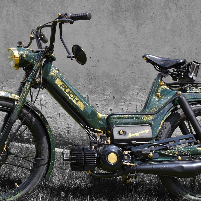 Flakes - Wenn es etwas extravaganter werden darf, setzen wir für Sie gerne eine Metal-Flake-Lackierung um. Diese Design-Oberfläche unterscheidet sich stark von der bekannten Standard-Lackierung. Bei der Metal-Flake Lackierung sind die im Lack enthaltenden Partikel wesentlich größer und auch brillanter als bei einer üblichen Metallic Lackierung. Wenn Sie also ein Statement setzen wollen, entscheiden Sie sich bewusst für eine Design-Lackierung dieser Art.